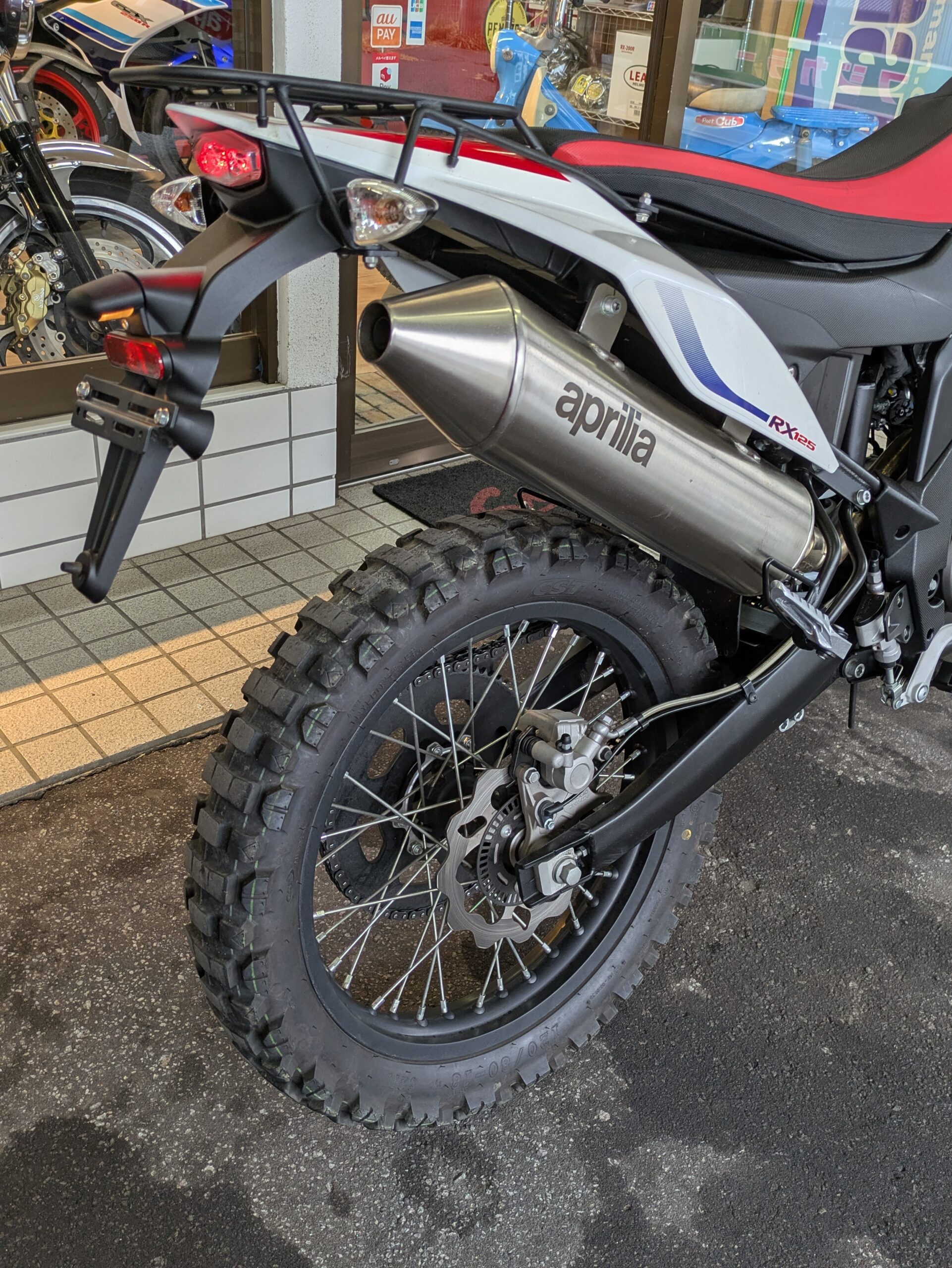 Aprilia RX125 Web Shop 中古バイク への投稿 2025年12月13日 投稿者:道下 淳也 Aprilia RX125 (2512001) 販売価格(税込)¥297,000在庫状態 : 在庫有りメーカー Aprilia 車種 RX125 排気量 4サイクル 125cc 年式 2021年モデル 色 Pホワイト/ブラック 保検/ 新規 走行距離 7,024km 点検整備 整備渡し メインフレーム修復歴 無し 車台番号(下3桁)205 備考 社外リアキャリア、ハンドルガード 数量