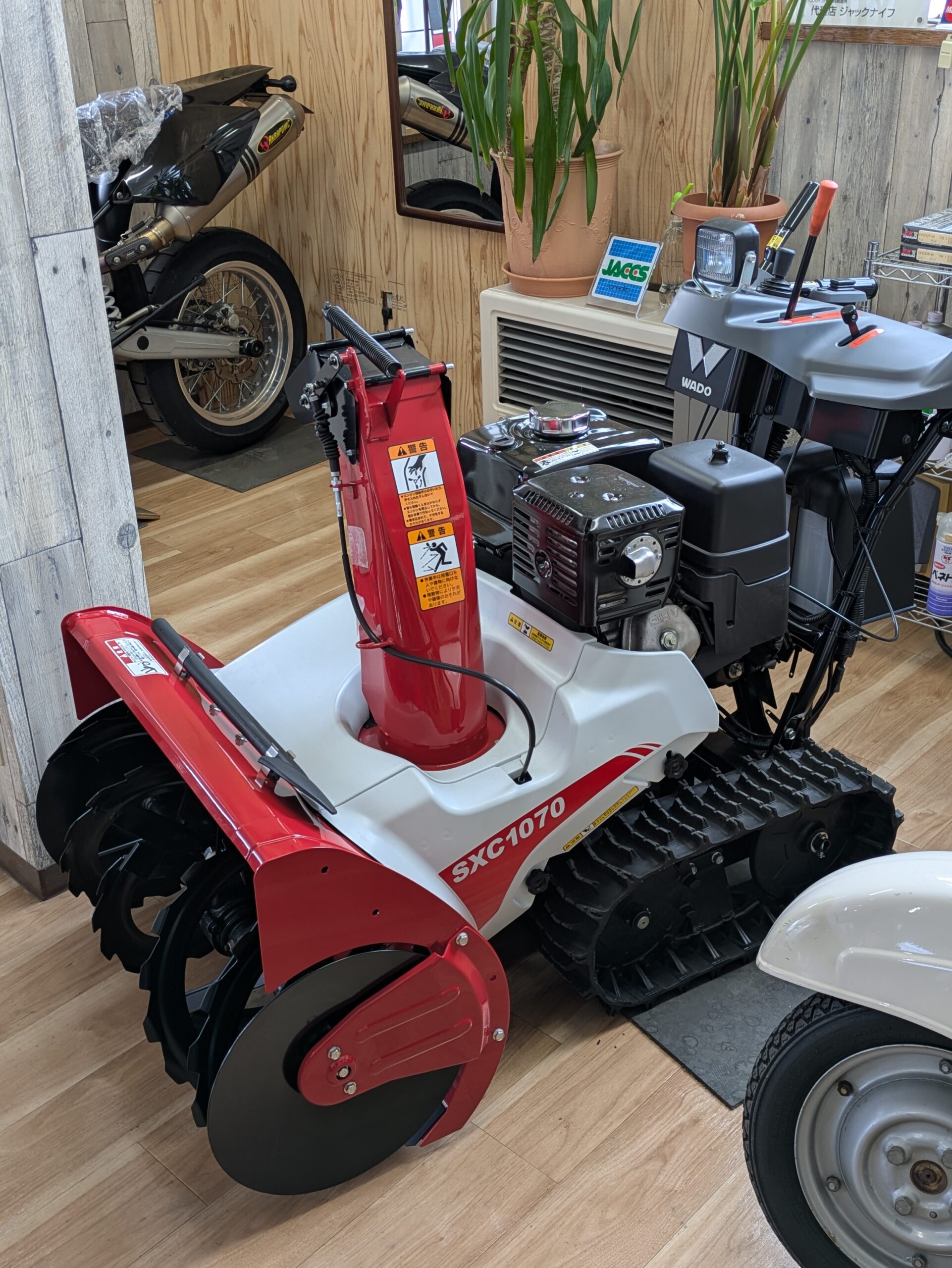 ワドー除雪機 SXC1070H WADO 即納可能 Web Shop 新商品 への投稿 2025年12月22日 投稿者:道下 淳也 ワドー除雪機 SXC1070H WADO (2512002) 販売価格(税込)¥657,800在庫状態 : 在庫有りメーカー WADO 機種名 SXC1070H 電動オーガ高さ調整付き 年式 2025年 除雪幅 71CM ブロワ周速 22.1m/s 最大出力 10ps ホンダGX390(390cc) 機体寸法 全長 1,505 mm 全幅 745 mm 全高 1,138 mm 備考 除雪能力 約30分で駐車スペース50台分 数量