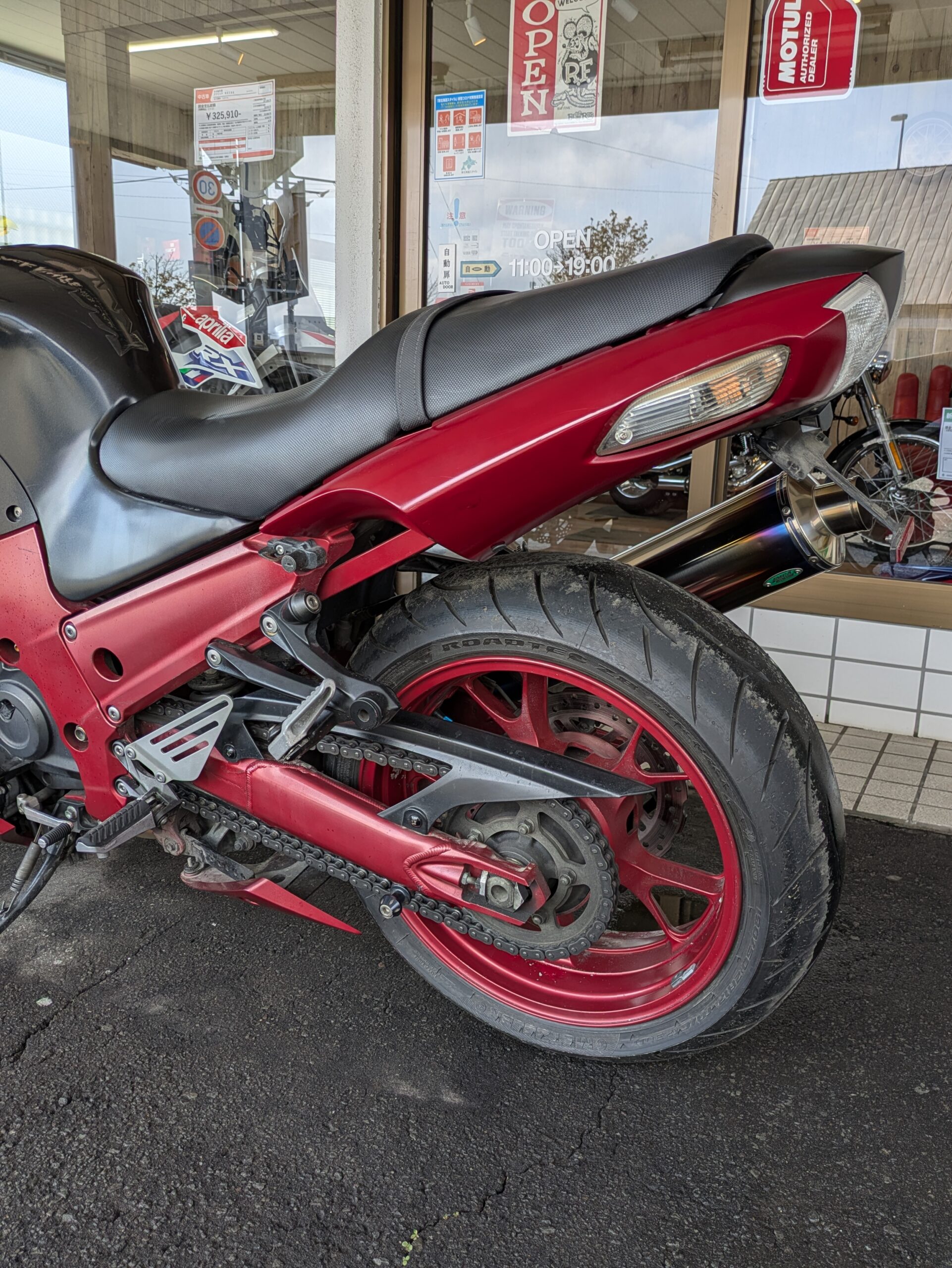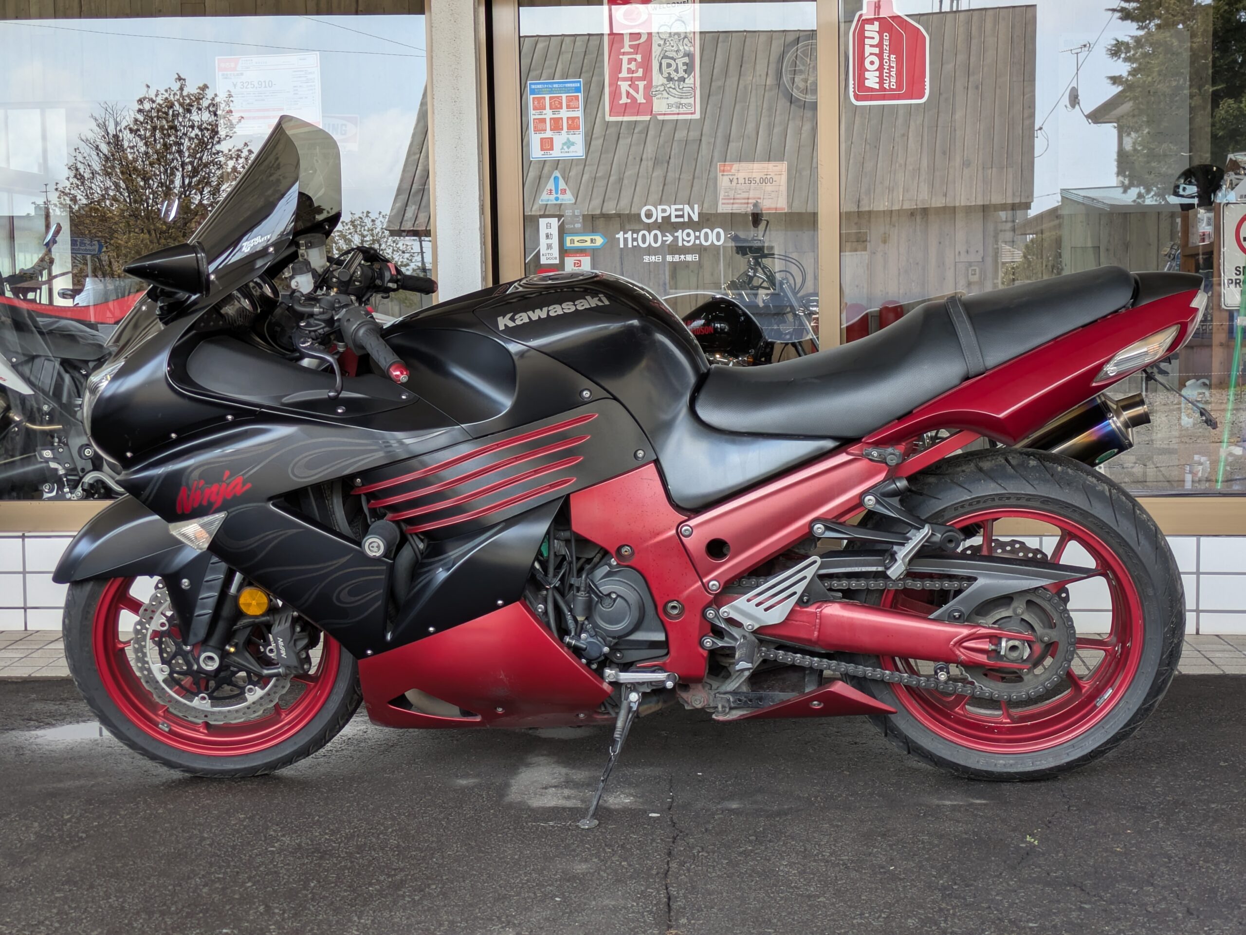 KAWASAKI Ninja ZX-14 special edition 更新しました! Web Shop 中古バイク への投稿 2026年4月22日 投稿者:道下 淳也 KAWASAKI Ninja ZX-14 special edition (2604002) 販売価格(税込)¥528,000在庫状態 : 在庫有りメーカー KAWASAKI 車種 Ninja ZX-14 排気量 4サイクル 1400cc 年式 2008年 北米モデル 色 ブラック/レッド 車検/ R9、8月 走行距離 83,427km 点検整備 整備渡し メインフレーム修復歴 無し 車台番号(下3桁)878 備考 フェンダーレス、社外スクリーン、ワイバーンフルエキチタンマフラー(政府認証)、スライダー他 数量